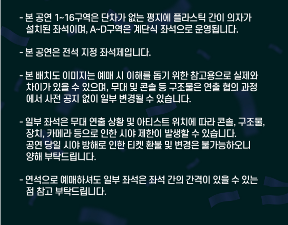 - 취소나 환불은 공연 7일 전까지만 가능하니 일정 확실히 체크하기